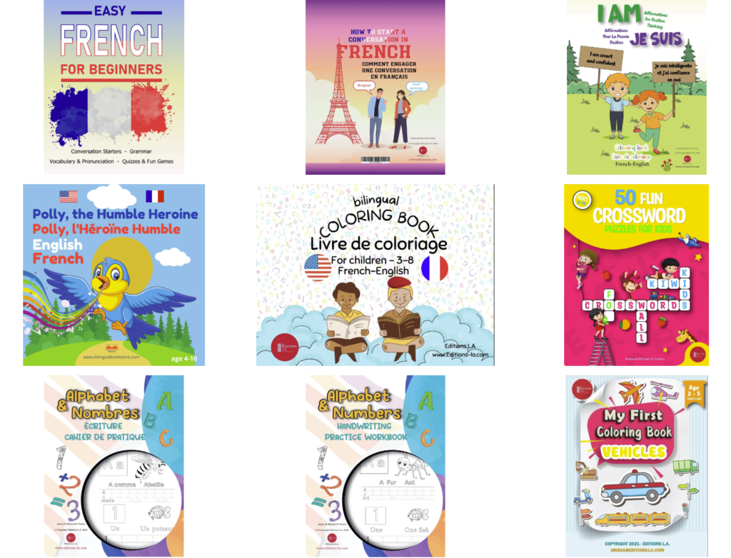 Snapshots of our bilingual books and happy readers learning French and English.